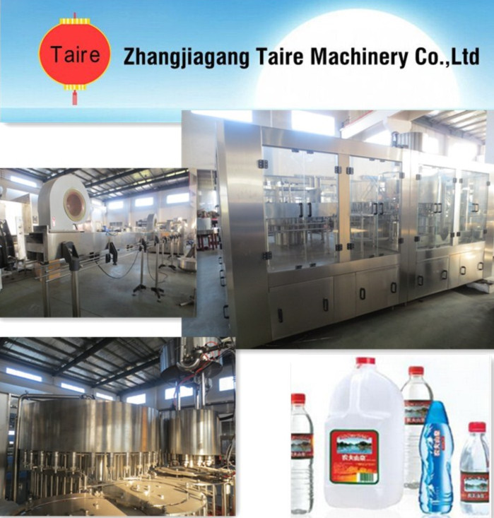 (2)The water filling line is mainly used in the beverage filling operations. The three functions of bottle wash, fill and seal are composed in one body of the machine. The whole process is automatic.
